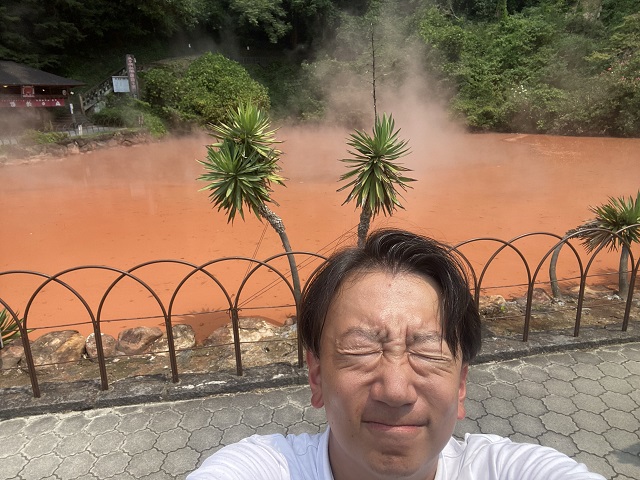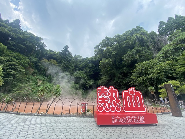 別府温泉郷の「血の池地獄」。九州の暑さは、頭から湯気が出るほど…