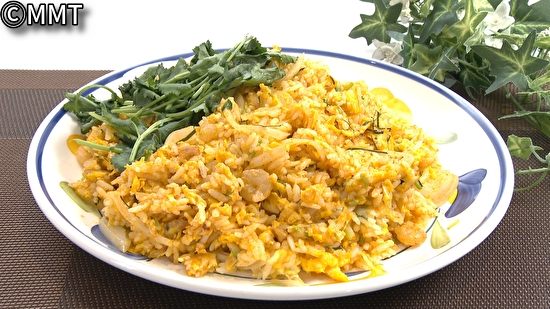 なったら、ご飯を入れて混ぜ合わせ、強火で炒める。