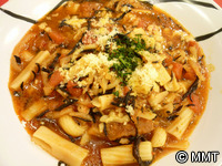 4. 水、トマト缶を加え、沸騰してきたらショートパスタを入れ、