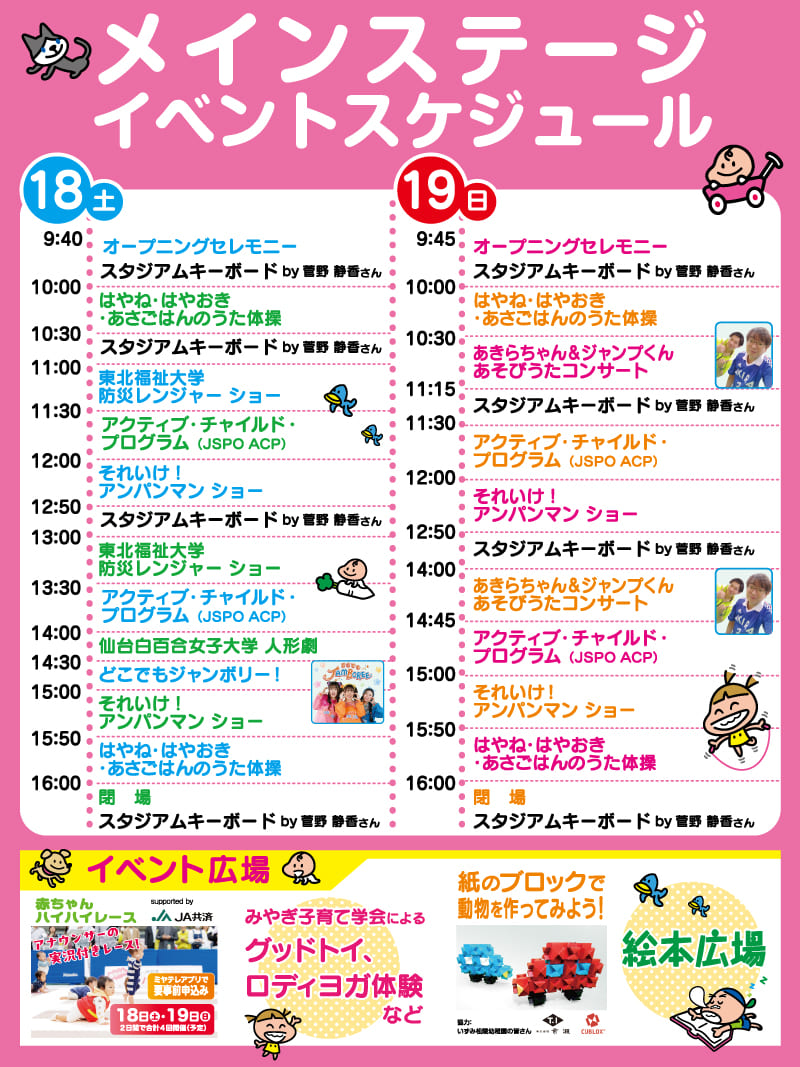 例年通り「それいけアンパンマンショー」や大人気の「赤ちゃんハイハイレース」も開催を予定しております。