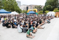感染対策を徹底し、3年ぶりに市民広場でイベントを開催しながら募金活動を行いました。熱中症予防を兼ね初めて大型テントを二張設置、その横にサーモ型の検温器を配置するなど、工夫を施しながらステージイベント、飲食ブースを交えての開催ができました。