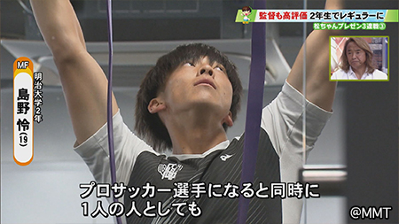 島野選手 「目標はプロサッカー選手になって活躍することなんですけど、まずは一歩一歩成長していかないとその夢には近づかないと思うので、明治の勝利のために、明治の優勝のために今は全力でプレーしたいと思います」