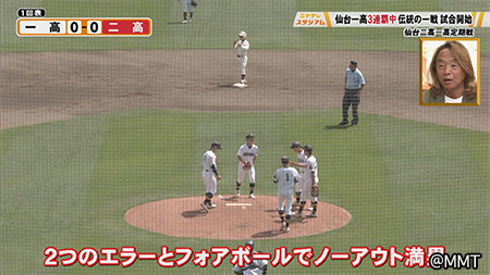 四大会ぶりの勝利へ、仙台二高が先行。四連覇へ、仙台一高が後攻。