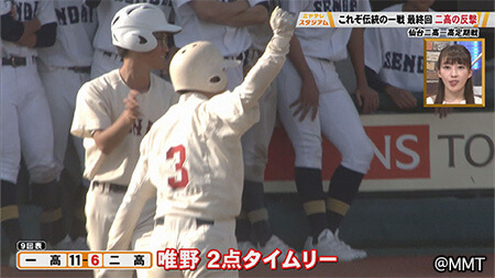 仙台二高、最終回、3塁2塁のチャンスを作るもすでに2アウト