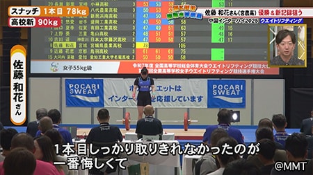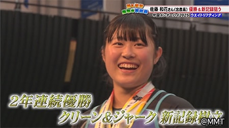 スナッチとトータルの高校新記録はとれなかったものの、2年連続の優勝とクリーン&ジャーク新記録樹立の快挙を果たした和花さん。