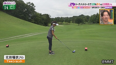 残り220ヤードで2オンも可能な位置ですが、無理せずに刻んでフェアウェイキープができたので北澤さんには狙っていただきましょう