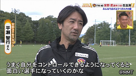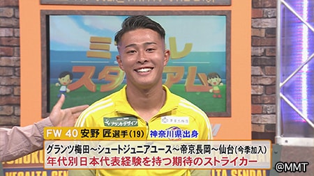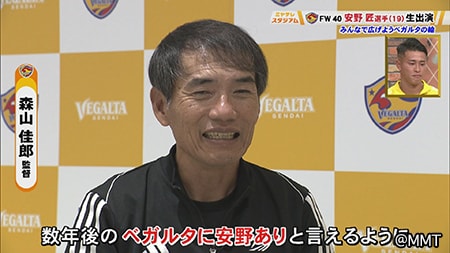 吉見アナウンサー「安野選手は今シーズン新潟の帝京長岡高校からベガルタに加入しました。すでにリーグ戦には出場していますが、改めてプロの舞台でプレーしてみていかがですか?」