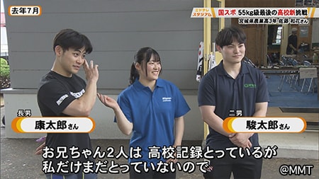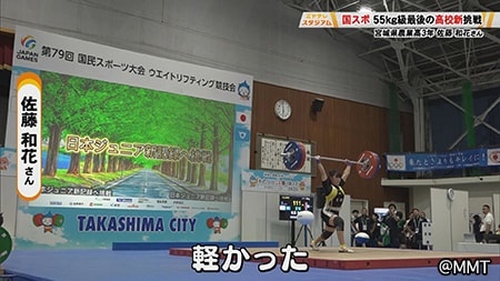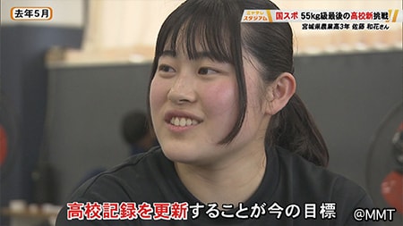 ミヤテレスタジアムでも応援している宮城県農業高校ウエイトリフティング部の佐藤和花さんの話題です!