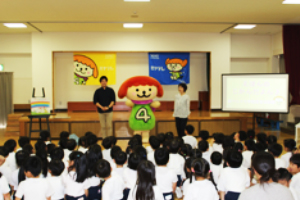 友愛幼稚園の年少・年中・年長さん110人のお友達。私たちが登場する前から「ミヤテレだよん♪」と口ずさんでくれていました。「へんしんトンネル」は大好きな絵本だったようで皆も大きな声を出して楽しく読むことができ、一方「ともだちや」は集中してじっくりと耳を傾けてくれました。最後はだよんくんとニコニコ笑顔でハイタッチ!友愛幼稚園の皆さん、楽しい時間をありがとうございました。