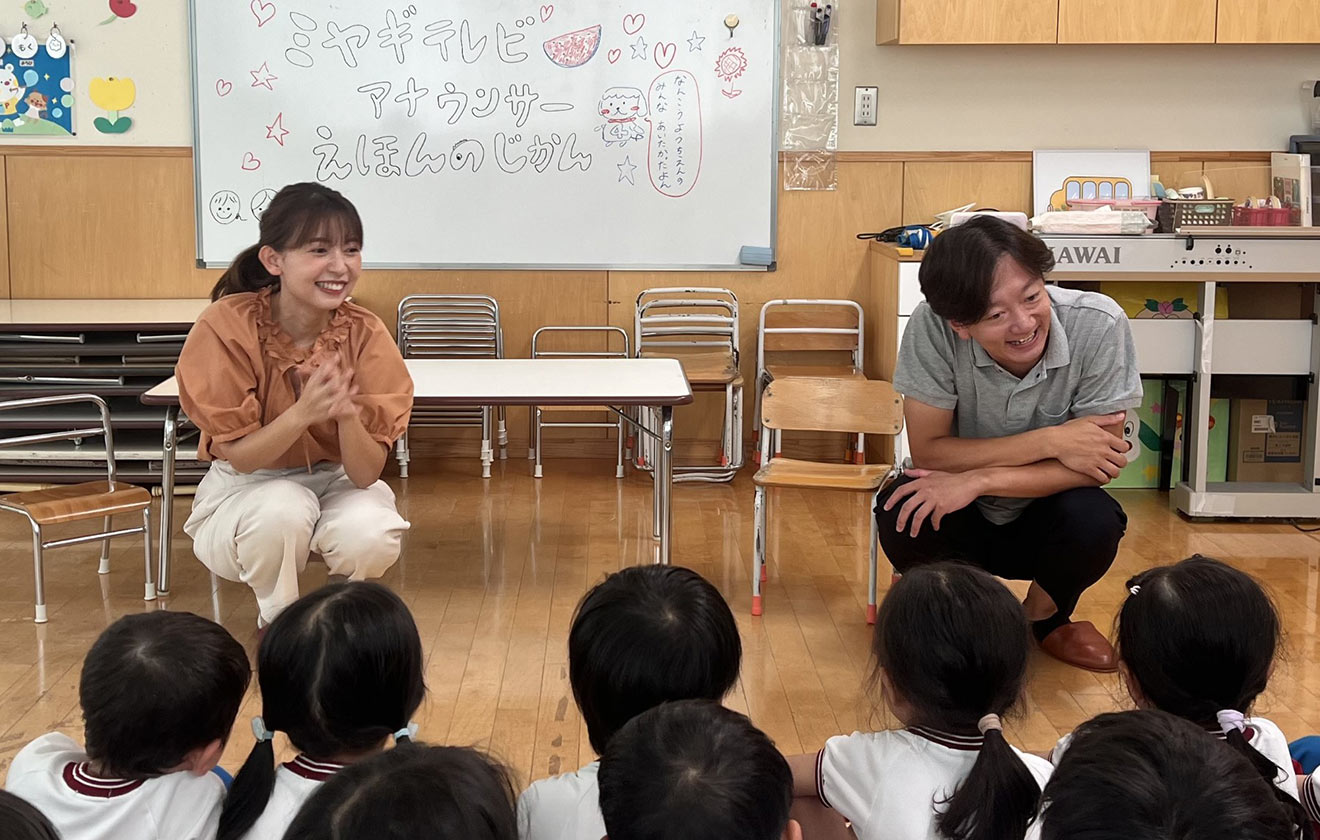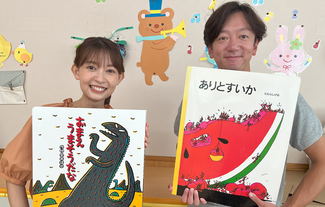 お誕生日会の中で、20分ほどお時間を頂いて、絵本の読み聞かせを行いました。数年前に伺う予定だった園ですが、新型コロナの影響で読み聞かせの活動が中断し伺えず。5年越しに行けました。園児の皆さんは、私たちアナウンサーの登場から温かい拍手を送ってくれ、読み聞かせの時間は、私たちの声に静かに耳を傾けつつも、盛り上がり所では反応しながら聞いてくれました。みんななんて偉いんだろうと感心したのと同時に、目の前にいる皆さんの生の反応を見ながら読み聞かせができるこの機会は、アナウンサーとしても重要な機会だなと再確認しました。岩切東光第二幼稚園のみなさん、ありがとうございました。